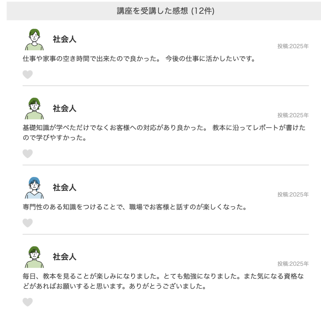 口コミを見ると、この資格が単なる知識講座ではないことがよくわかります。